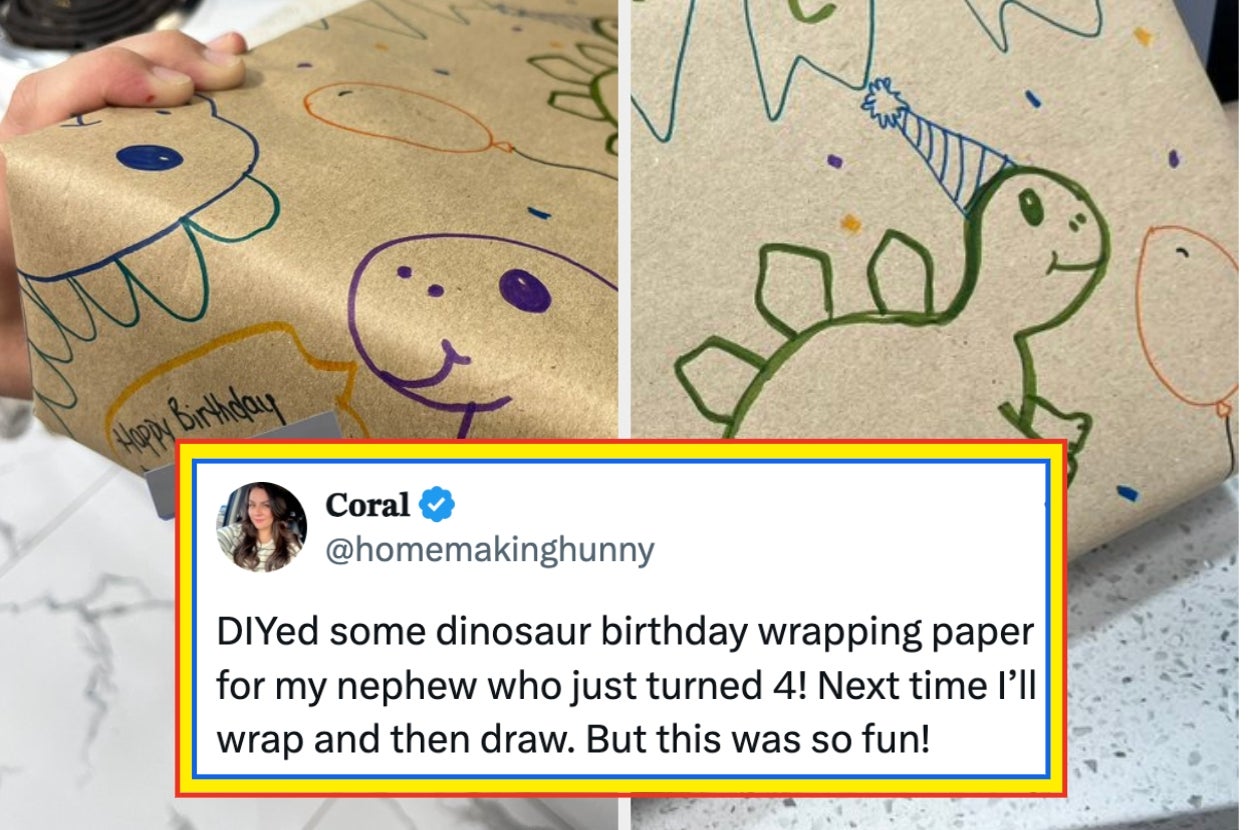 This homemade dinosaur wrapping paper:
