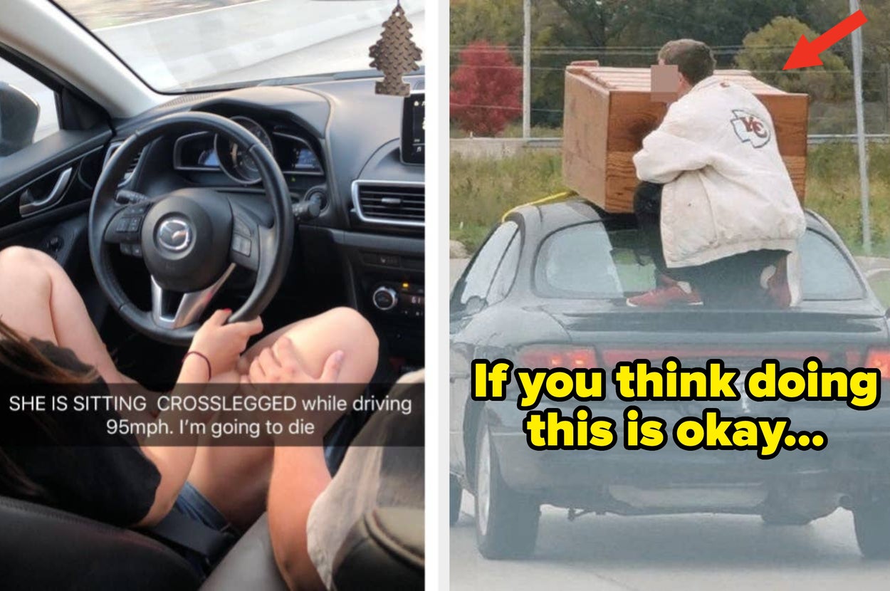 Drive a car with a dang SNOWMOBILE on top of it: